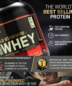 Rated among thebest protein that money can buy and by combining WPI with premiumultra-filtered Whey Protein Concentrate (WPC), the Optimum Nutrition’s GoldStandard 100% Whey 5 Double Rich Chocolate gives you 24 grams of protein packedinto every serving to help and support your muscle building needs.