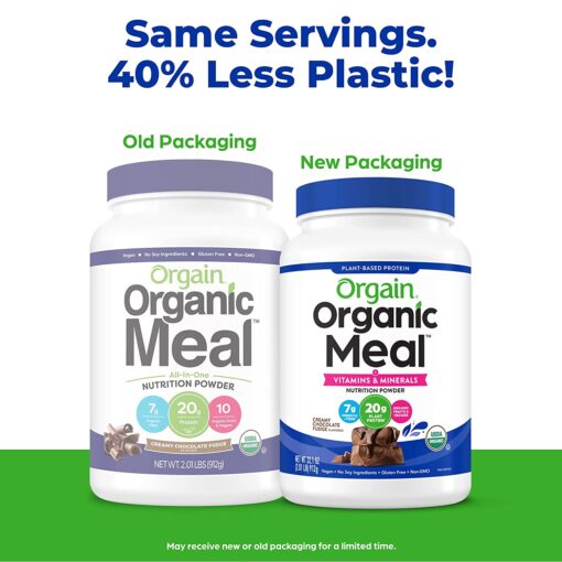 Product details of Orgain Vegan Protein Meal Replacement Powder Chocolate Fudge, Vanilla Bean 2Lb Certified Organic and Plant Based No Gluten Non-GMO