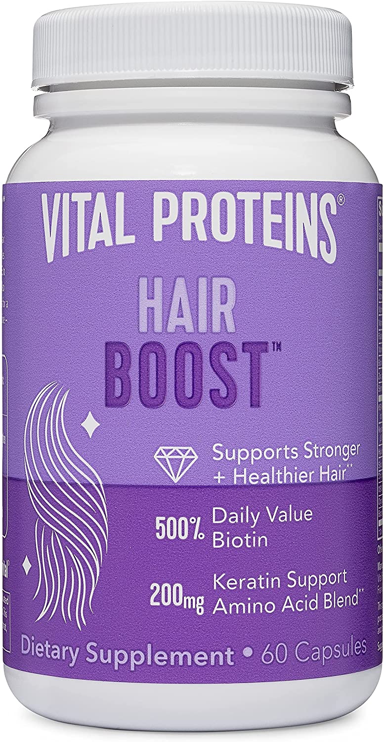 Vital Proteins Hair Boost, 60 CT, Hair Boost™ capsules contain vitamins A, B6, B12, C & E to support healthier hair. Contain Biotin Hyaluronic Acid Keratin and ashwagandha root extract